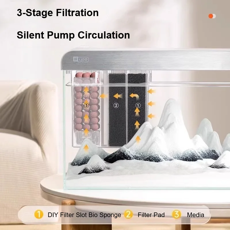 Ultra Clear Glass Desktop Aquarium Eco System Self Circulating for Home Office Living Room Coral Reef Fish Tank